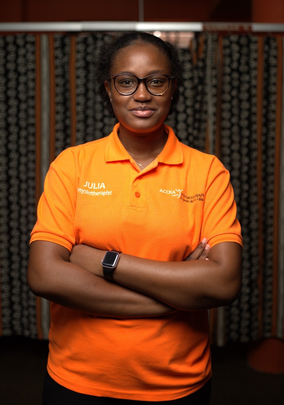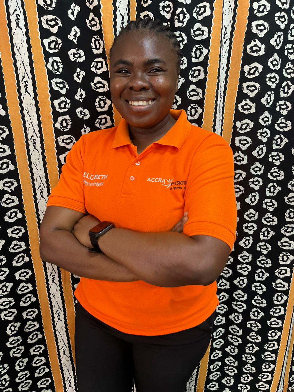 Anna HughtonClinic Director / Physiotherapist Elizabeth TaylorClinic Administrator / Public Relations Manager & Physiotherapist Nana Adjoa Serwaah AsareAssistant Clinic Administrator Caleb Kwabena AndohPhysiotherapist Elizabeth AgyapongPhysiotherapist Richard Boadi AsarePhysiotherapist Bright DoePhysiotherapist Julia Beryl Amoo-YankeyPhysiotherapist Christiana DadziePhysiotherapy Assistant / Technician Elizabeth NyasemPhysiotherapy Assistant / Technician Ann KimeuMassage Therapist Priscilla Naa OsekreMassage Therapist Laurita de Diego BrakoPsychotherapist No Results Found